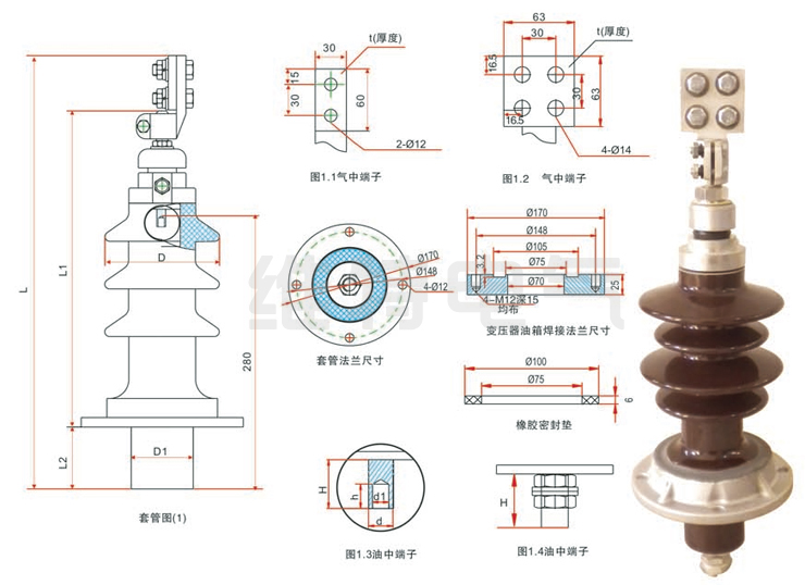 2.具有離抗震和耐破性、機械強度好,套管鋁合金法蘭采用航空技術生產,瓷套與法蘭采用特殊工藝經卡裝后粘接在一起,機械 強度高、耐腐蝕、外型美觀,適合特殊環境。